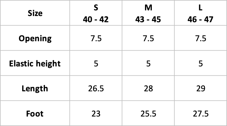 Each sock may have a margin of error of 1.5cm due to the special way they are made.